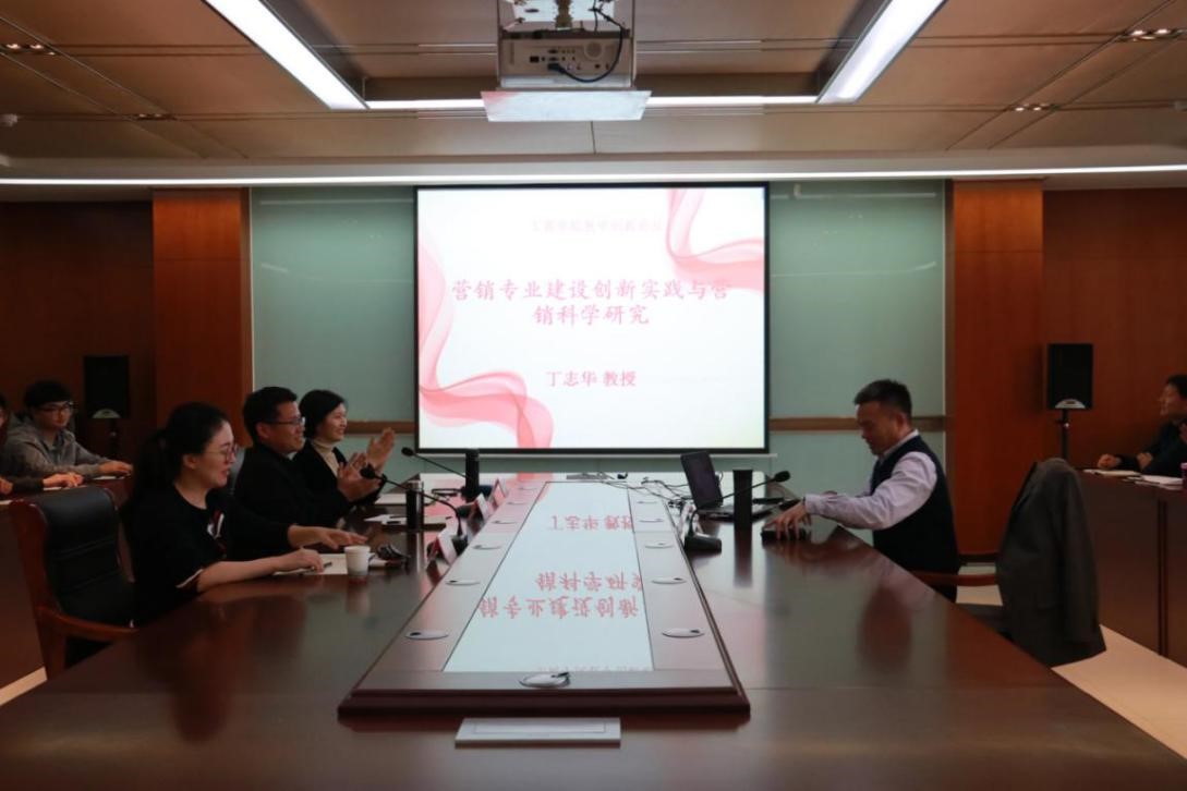 本期讲座邀请了中国矿业大学工商管理一级学科负责人、博士生导师、营销科学系主任丁志华教授作为主讲人。丁教授以“营销专业建设创新实践与营销科学研究”为主题,分享了中国矿业大学市场营销专业在大二大类专业分流时如何曾经由一个弱吸引力的专业蜕变成一个如今强吸引力的专业的历程,介绍了“一个定位、两个转变、三个整合、四个强化”的人才培养总体思路、“WKB团队培训、市场研究技能实训、营销策划技能实训、营销公关综合实训、营销决策模拟、营销通用指数计算与发布”六大特色实践教学模块等众多针对性极强的思路、做法与经验。丁志华教授还从学科专业一体化发展的视角,分享了自身从事营销科学研究的心得体会,并将已申报的2019年国家自然基金面上项目书与现场老师进行了分享和交流。