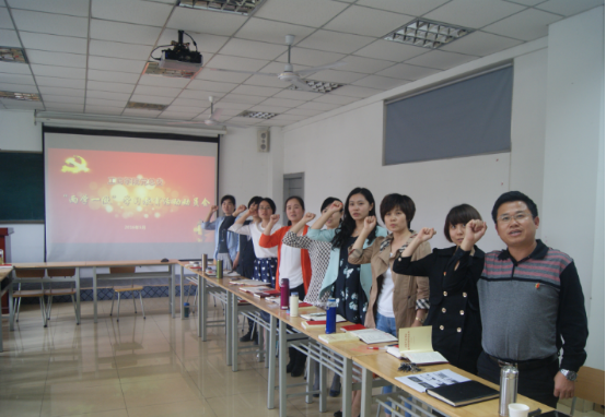 刘书记专题党课之前,工商学院党总支书记孙家学同志传达了学校“两学一做”学习教育工作动员会的会议精神,党总支副书记胡忠任同志就工商学院开展“两学一做”学习教育工作进行了具体部署。动员会结束之后,工商学院党总支带领全体党员举行了“践行党的宗旨,重温入党誓词”的宣誓仪式,学习了党章总纲部分。