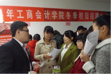 为切实做好毕业生就业工作,进一步拓宽毕业生就业渠道,11月8日上午,工商学院与会计学院在综合教学楼一楼联合举办了2014年冬季校园招聘会。招聘会期间,学校党委副书记荀方杰、学生处陈沙副处长莅临现场指导。