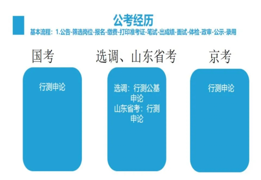 曹磊学长和厉志勇学长则主要结合自己的考公经历,向同学们分享考公的相关经验。介绍了从“公告-筛选岗位-报名-笔试-出成绩-面试-体检-政审-公示-录用”一系列考公基本流程,且从资料、公众号、APP三个方向推荐相关信息获取渠道。最后额外推荐了中国铁路济南局集团有限公司大学生招聘网等网站,为同学们提供更多与考公相关的信息渠道。