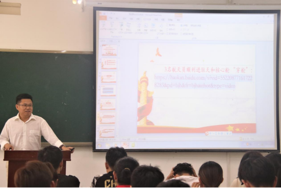思政课上,胡院长主要从“什么是历史思维能力”、“历史是最好的教科书,中国革命历史是最好的营养剂”、“两点启示”三个方面进行讲解,借助“3名航天员成功进驻天和核心舱‘穿舱’”和“金一南:中国共产党才是世界上最牛的团队”两个材料,与同学们探讨中国共产党成功的秘诀,最后深刻领悟了“以人民为中心”和“增强四个自信”两个重要启示。