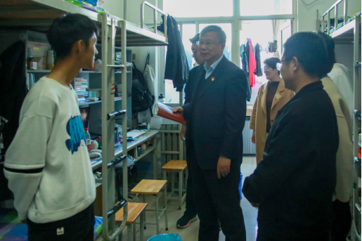 随后,董以涛一行走访了工商学院的学生宿舍。看到学生将宿舍打扫得干干净净,董院长给予了高度评价,并嘱咐大家在宿舍里要相互关心、相互帮助,积极发挥团队协作精神,共同营造良好的学习、生活环境,以崭新的精神面貌投入到学习中。