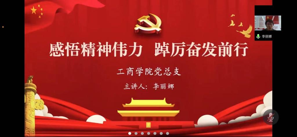 为深入学习宣传贯彻党的二十大精神,推动党的二十大精神入心入脑,11月23日下午,工商学院线上开展“感悟精神伟力 踔厉奋发前行”主题思政课。本次思政课由工商学院党总支书记李丽娜主讲,学生党员、入党积极分子及主要学生干部参加。