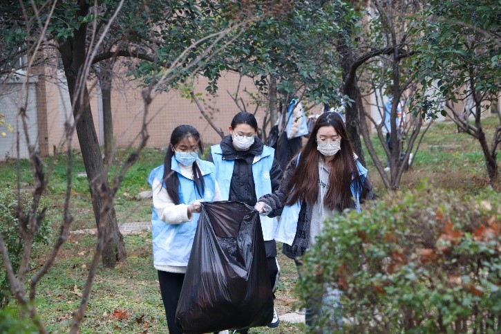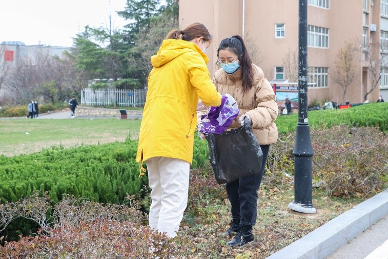 为切实做好疫情防控工作,营造干净、整洁的校园环境,保障全校师生的身体健康和生命安全,激励担当作为,弘扬“奉献、友爱、互助、进步”的志愿服务精神,凝聚志愿服务力量,展现志愿者风采。11月27日,工商学院组织开展校园清扫活动,工商学院党总支书记李丽娜、副院长周蕊带领旅游管理教研室主任李烨、工商学院辅导员胡玥、焦书航、李加鹏、杨秉彦、宣东昊以及工商学院学生志愿者共同参与。