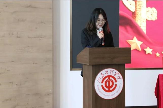 为深入学习贯彻党的二十大精神,切实加强对入党积极分子的教育培养,把好党员发展的“入口关”,端正入党动机,保障党员发展工作的政治性和严肃性。4月6日,山东管理学院工商学院顺利举办分党校入党积极分子培训班开班仪式,本次会议由工商学院学生第一党支部书记胡玥主持。参加此次开班仪式的有工商学院党总支书记李丽娜、组织员周颖、团总支副书记(学生工作办公室副主任)李彤彤、第二学生党支部书记杨秉彦、全体辅导员和入党积极分子培训班全体学员等。