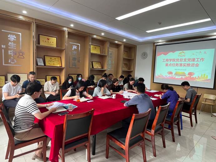 5月31日,工商学院党总支在博思楼211会议室召开党建工作重点任务落实推进会,布置近期党建和思想政治工作,推进年度党建重点任务落实。学院领导班子成员、组织员、各党支部书记参加会议,会议由党总支书记李丽娜主持。