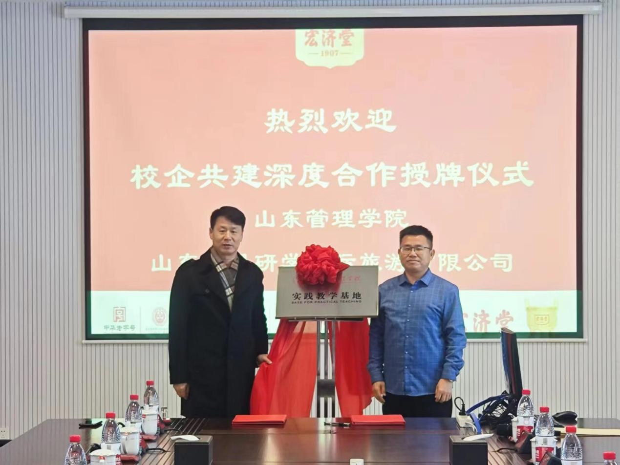 12月27日,山东管理学院工商学院与宏济堂校企深度合作协议签订暨山东管理学院大学生实践教学基地揭牌仪式在宏济堂新闻发布中心举行。山东鲁旻研学国际旅游有限公司总经理孙元旬、山东管理学院工商学院院长胡忠任、旅游管理系系主任李烨、教师李小娟、张晓东等相关人员出席仪式。