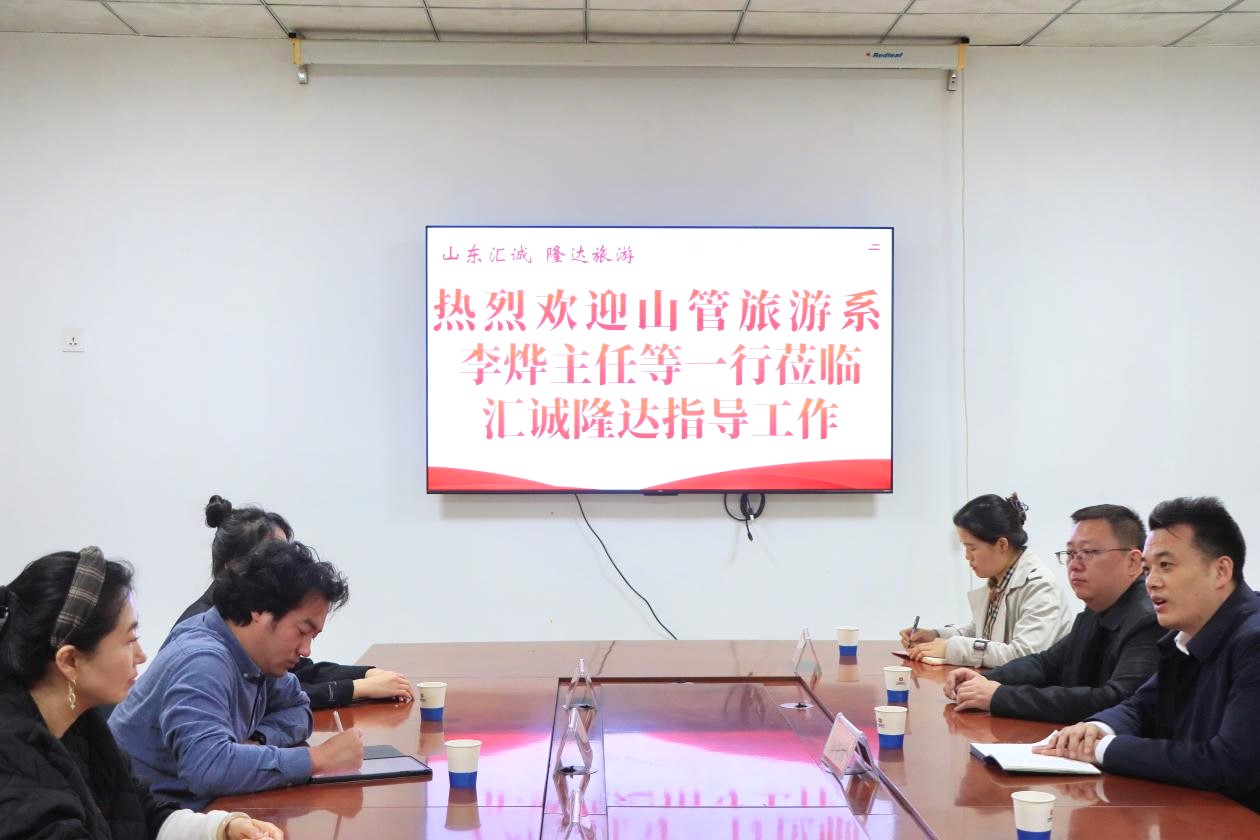 2024年3月19日上午,山东管理学院工商学院旅游管理系党支部书记、系主任李烨,党支部副书记、副主任杨欣率领团队赴德州乐陵与汇诚隆达集团进行交流座谈。山东管理学院教师兼山东汇诚博明投资开发(集团)有限公司党委副书记、副总经理常杰,副总经理杨晓辉,副总经理陈国强,旅游公司经理刘金岭,以及汇诚旅游公司的全体员工出席会议。