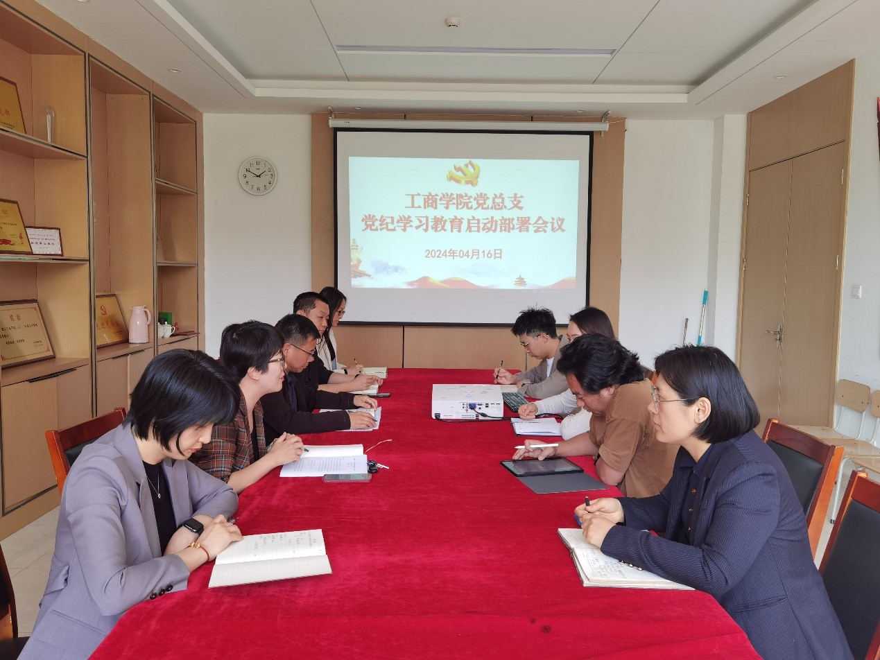 4月16日,工商学院党总支在博思楼211会议室召开党总支(扩大)会议暨党纪学习教育启动部署会议。学院领导班子成员、组织员、各党支部书记、科级干部参加会议,会议由党总支书记李丽娜主持。
