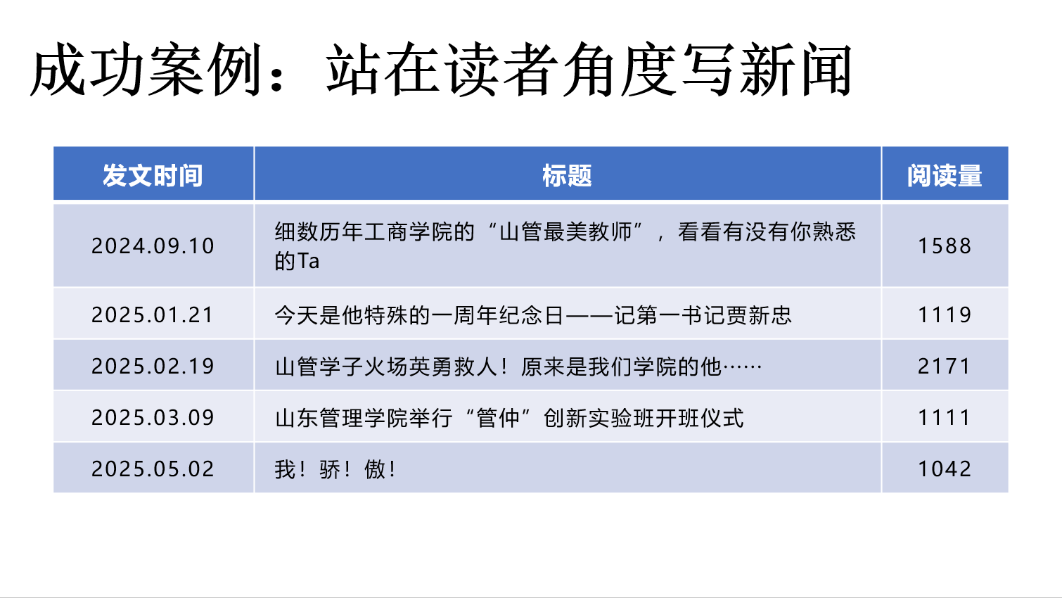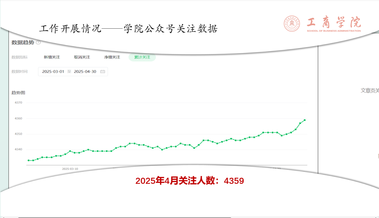 杨秉彦围绕学院新媒体业务,从多个维度进行了详细汇报:在视觉设计层面,深入介绍学院公众号UI界面设计思路及banner动图制作流程;在运营数据方面,全面分析本年度公众号的内容发布频次、关注用户增长趋势,以及浏览量破千的爆款文章的特点与成功经验。
