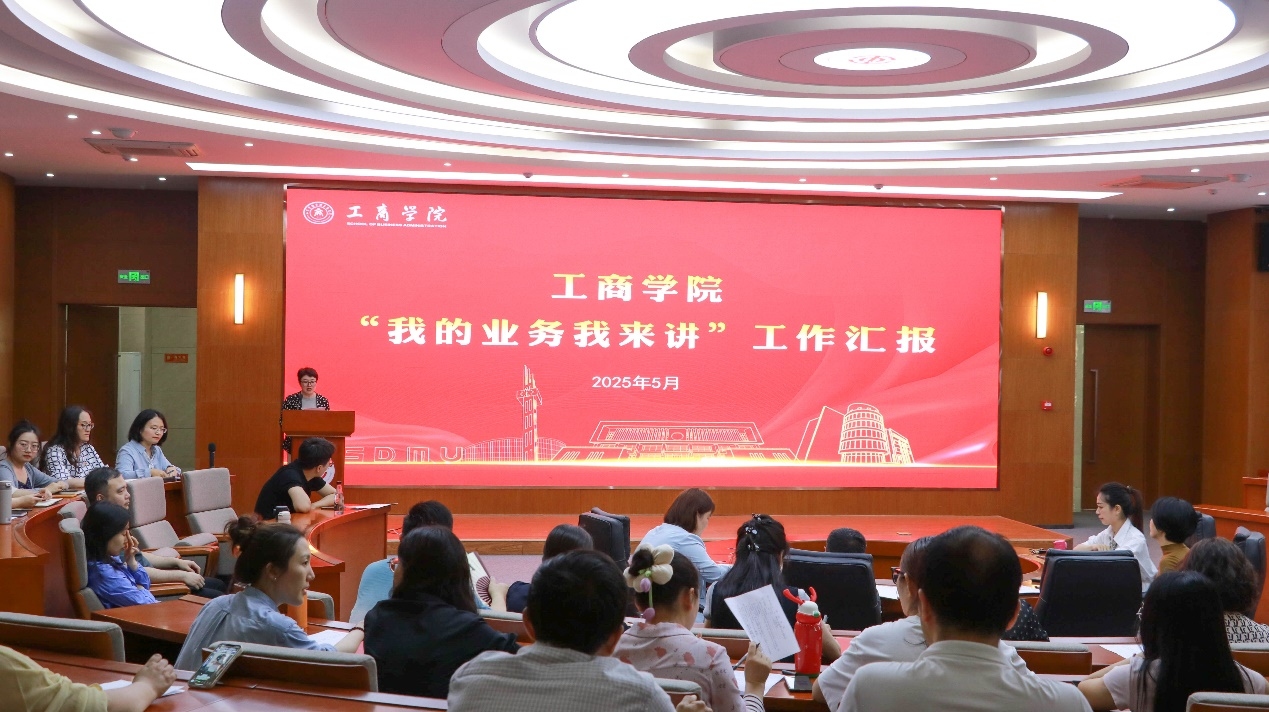 为进一步深化党建业务融合,大力实施“提融促”工程,锤炼干部履职能力、工作本领和过硬素质,工商学院于5月21日在实验实训中心报告厅开展“我的业务我来讲”活动。工商学院全体教师参加活动并现场评分。