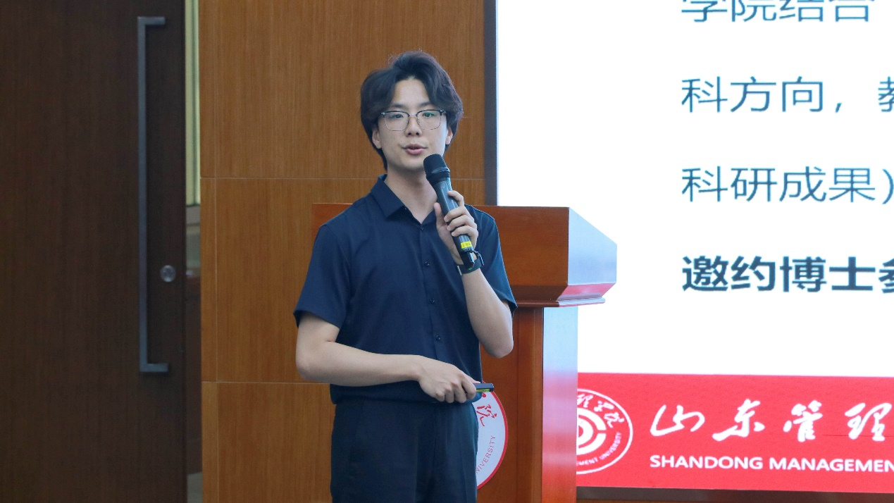 焦舒航围绕学院资助、评奖评优、团学工作,从多角度汇报工作:在资助上,分析了学院落实资助政策的多途径多方式,强化资助育人实效;在评奖评优上,分析了近三年数据,讲解了如何发挥优秀学生的榜样带头作用;在团学工作上,分享了以青年大学习、青马班、主题团课等为抓手,以创新模式强化思想引领,规范组织建设,推动思政工作与人才培养。