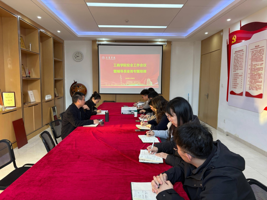 为深入贯彻学校安全工作部署,进一步提升辅导员队伍的业务能力和应急处理水平,12月8日,工商学院组织召开安全工作会议暨辅导员业务专题培训。学院党委书记胡忠任、党委副书记杜菲菲出席会议,学院全体辅导员参加会议,会议由杜菲菲主持。