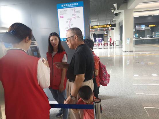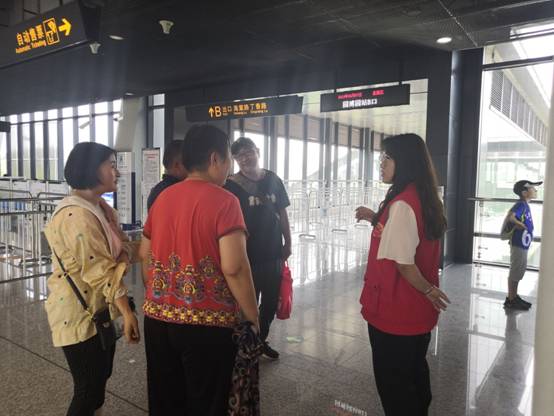 本次志愿者服务以地铁一号线各个多个地铁站为主要服务点,同学们本着助人为乐的精神,奉献自我的品质,致力于解决来往乘客的各类问题,志愿者们引导着老人取票,帮着小孩子们进出站口,帮来来往往的同学们拿行李搬箱子……他们尽全力去帮助游客,再苦再累他们也在坚持,因为他们知道,作为一个志愿者,在助人的同时,也是自助。