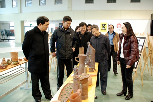 座谈会后,冯庆禄、宋伊宁在校领导陪同下参观了学校图书馆、校史馆和艺术学院学生作品展。学校办公室、宣传部负责人陪同活动。