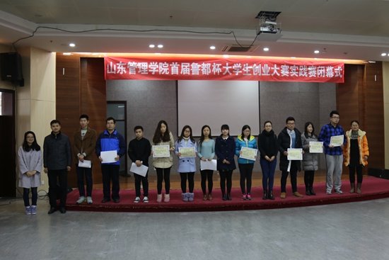 12月10日下午,山东管理学院首届“鲁都杯”大学生创业大赛实践赛闭幕式在图书馆报告厅举行,鲁都商贸总经理杨忠亮、孔繁星,学生工作处、各二级学院相关负责人及教师参加本次仪式。这标志着历时2个多月、300多名学生参与的我校首届创业实践赛顺利完成。