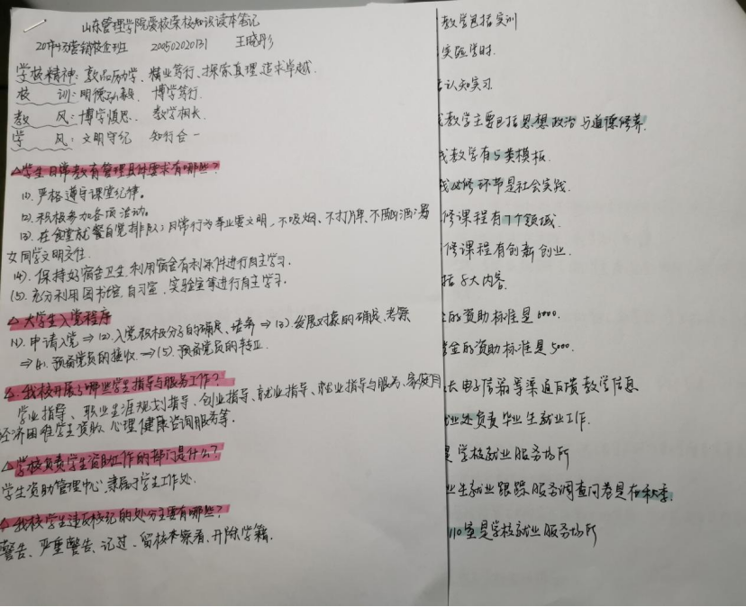 同学们自己学习《山东管理学院爱校荣校知识读本》,通过阅读、赏析、思考,将知识读本中的重要部分或者自己感兴趣的内容摘抄下来,写出自己的感想、体会或启发。
