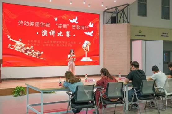 为热烈庆祝五月青年劳动成长月,丰富和活跃学生们的校园生活,使学生认识到劳动最光荣、劳动最伟大、劳动最美丽,以积极主动劳动、争做劳模为荣。由校学工处主办、工商学院和劳动关系学院协办的“劳动美丽你我‘疫期’赞歌同行”演讲比赛决赛于6月1日在双创中心成功举办。