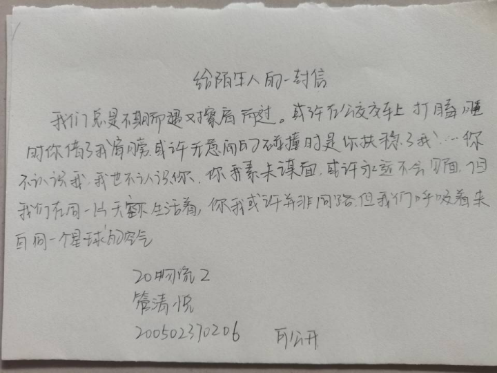 本次活动取得了圆满成功,不仅给予同学们一个向外表达的机会,拉近了人与人之间的距离,相互传播温暖的力量。鼓励大学生们去发现那些藏在生活细微之处不易察觉的关心与爱。还通过书信的方式丰富了校园文化,缓解了同学们的心理压力、唤起了工商学子对身边人身边事的关切,让工商学子们能在每天繁重课业之余心怀感恩的去对待生活中的美好,保持对生活的热爱。