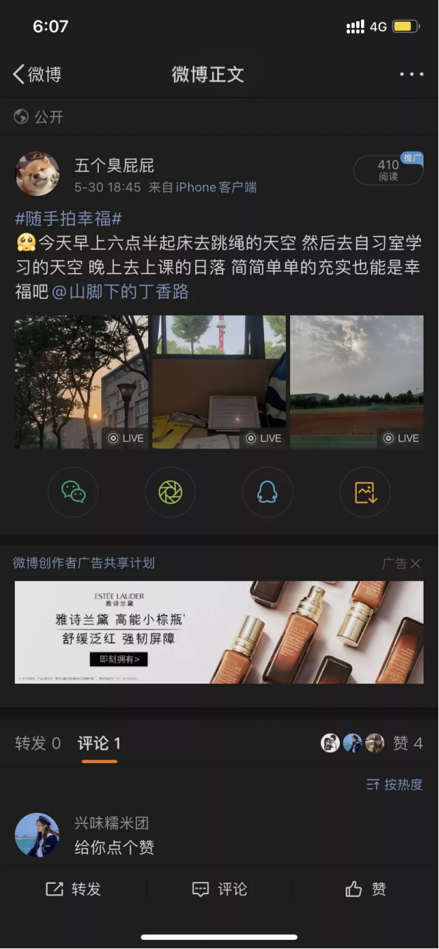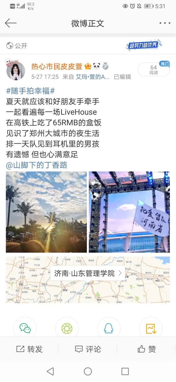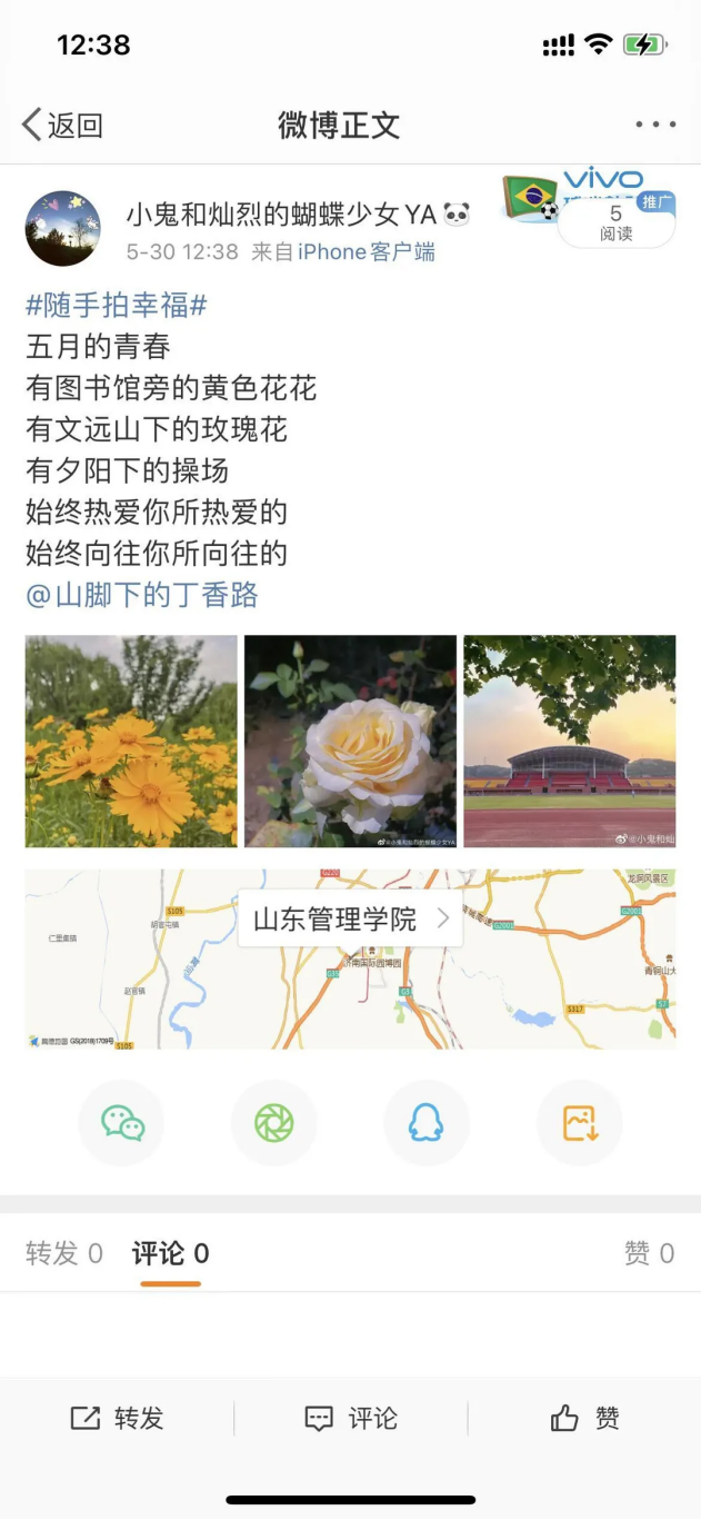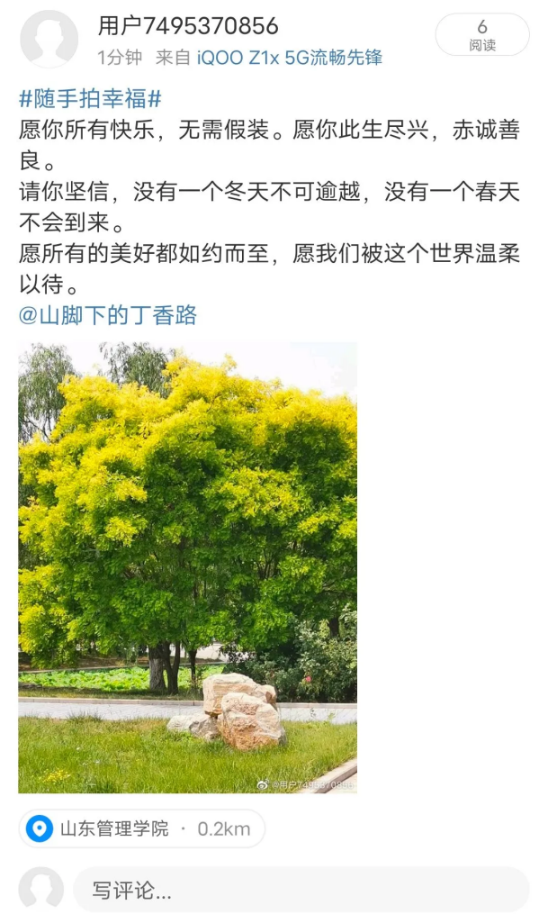 该活动让同学们通过“文字+图片+微博分享”的方式,记录身边的小确幸,不仅给同学们一个展示自我的平台,加强同学们之间的交流,相互分享幸福感、传递温暖与力量,而且有利于帮助同学们缓解压力、治愈心灵,增强积极心理体验,唤起幸福感。