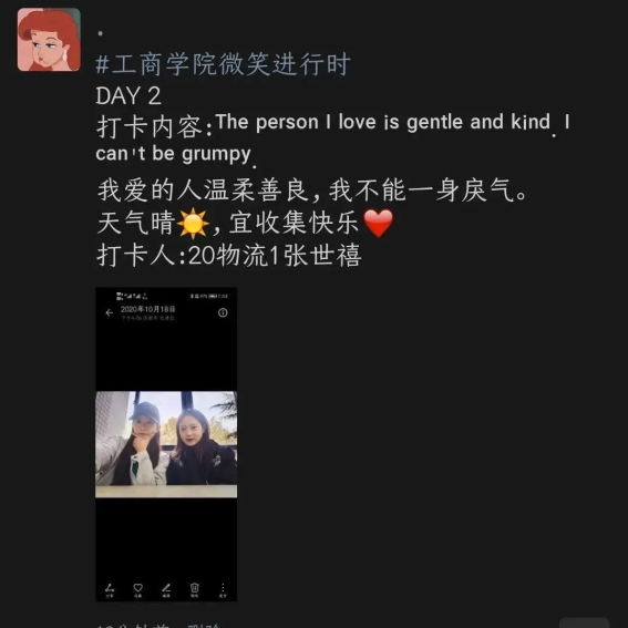 微笑是一种态度,微笑进行时活动传递了温暖与力量,缓解了同学们的压力,治愈了大家的心灵,唤起了工商学子的幸福感。