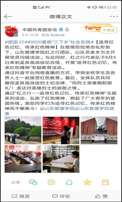 7.追寻红色记忆,传承红色精神——工商学院红之行团队2020暑期社会实践+山东管理学院团委+https://mp.weixin.qq.com/s/WTGZBFyT-PjwxwwUACJvjg