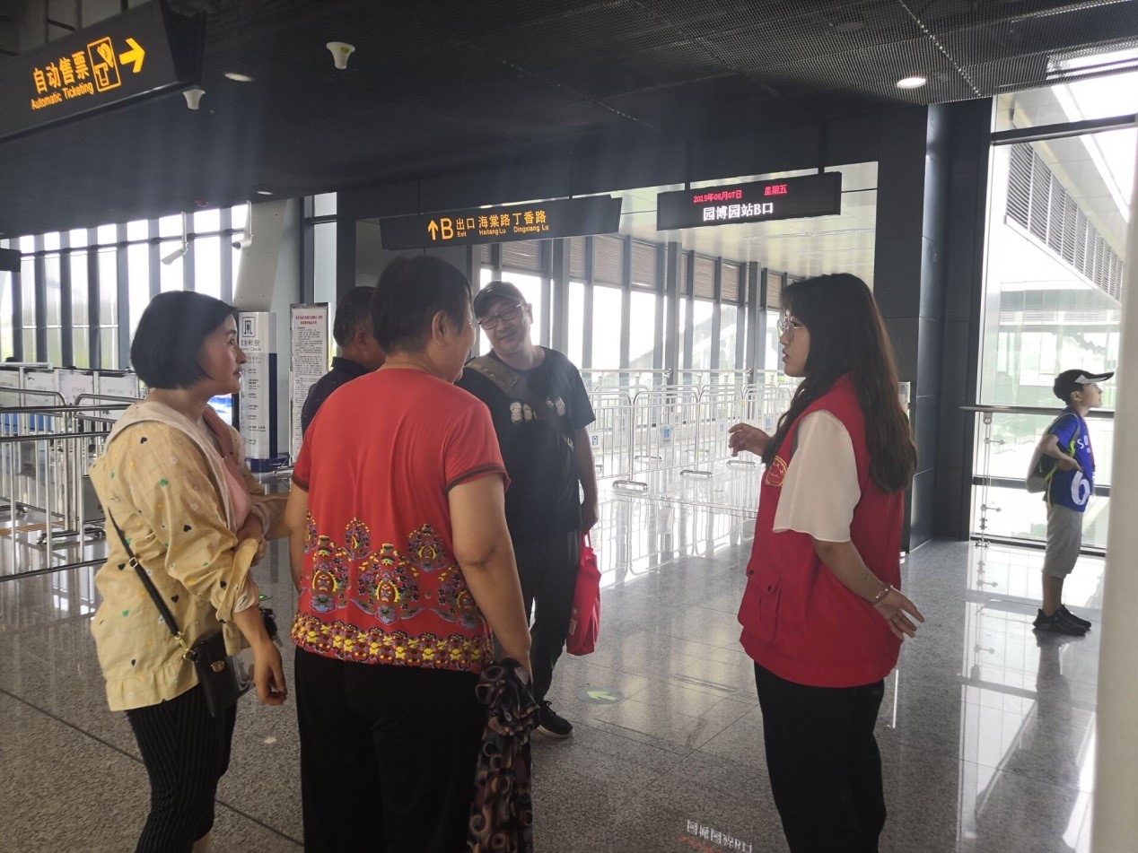 为助力济南地铁出行,6月7日,工商学院学生党支部入党积极分子和学生组织部分成员在济南市长清区地铁一号的地铁站进行了为期一天的志愿活动。