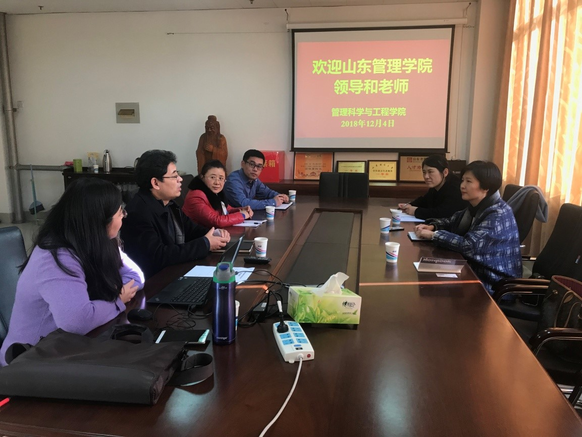 刘培德院长首先对山东财经大学管理科学与工程学院的情况作了简要介绍,随后,陈爱玲主任从专业发展历程、专业培养目标、专业特色、课程设置、学分、学时安排、实践教学组织、实习基地建设等方面对物流管理专业进行了详细介绍,我院教师针对物流管理专业人才培养、专业发展、校企深度合作等问题与之进行了深入探讨。