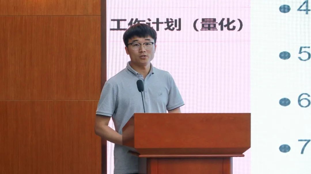 滕旋从教学基本职责,经验体悟,优化改善和未来计划四方面进行汇报,在汇总中着重分享了优化改善方案和未来的工作规划,表示继续加强业务能力,提升工作素养。