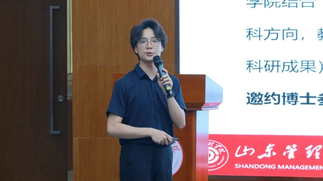 焦舒航围绕学院资助、评奖评优、团学工作,从多角度汇报工作:在资助上,分析了学院落实资助政策的多途径多方式,强化资助育人实效;在评奖评优上,分析了近三年数据,讲解了如何发挥优秀学生的榜样带头作用;在团学工作上,分享了以青年大学习、青马班、主题团课等为抓手,以创新模式强化思想引领,规范组织建设,推动思政工作与人才培养。